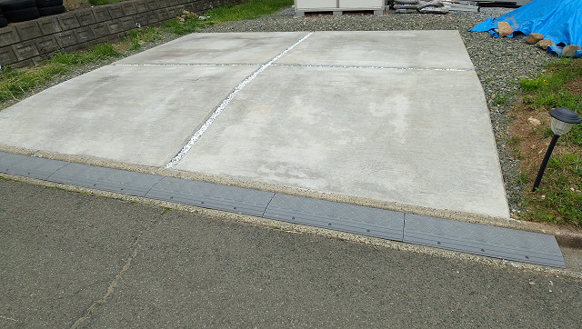 今回のコンクリート駐車スペースのコンクリートの仕上げは、刷毛ひき仕上げで施工させて頂きました。