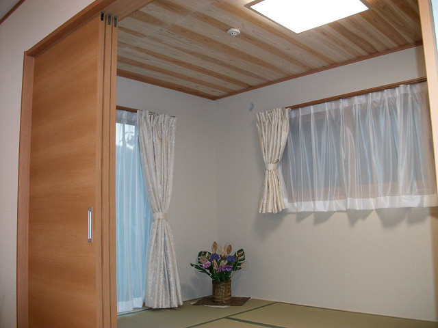 木材は、県産材の松、杉等を豊富に使用し、天井には無垢材の杉を張り、床には無垢材の竹を張る等して天然材にこだわりました。