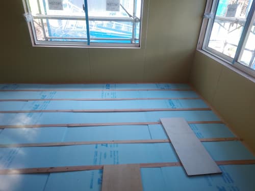 少し前に事務所に届いた施工写真ですが、断熱材入れの作業も進み、フローリング材を張り終え、6月中旬の完成を目指して頑張っております(^^)v