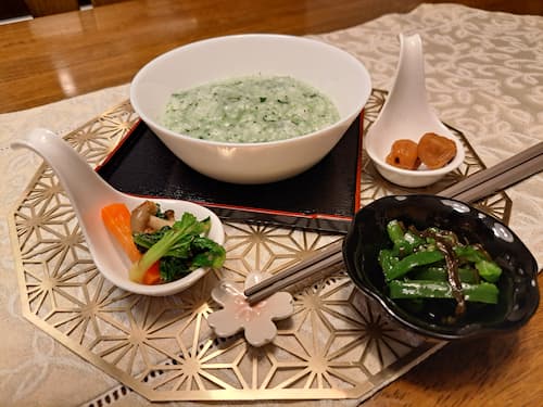 本日の朝食は春の七草粥を食べてから出社致しました。