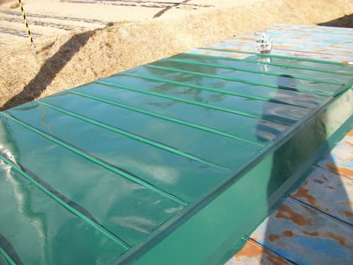 母屋と小屋のリフォーム工事ですが、まず最初は小屋の屋根塗装工事から始まっております(^^)v